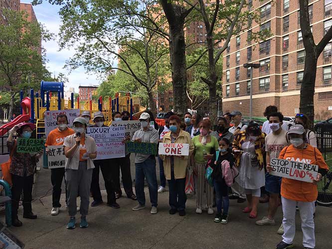 Residents gathered at Rutgers Park on May 23, the day that demolition was originally slated to begin, to protest the closure of their park. The demonstration was organized by a local advocacy group, the Committee Against Anti-Asian Violence (CAAAV).